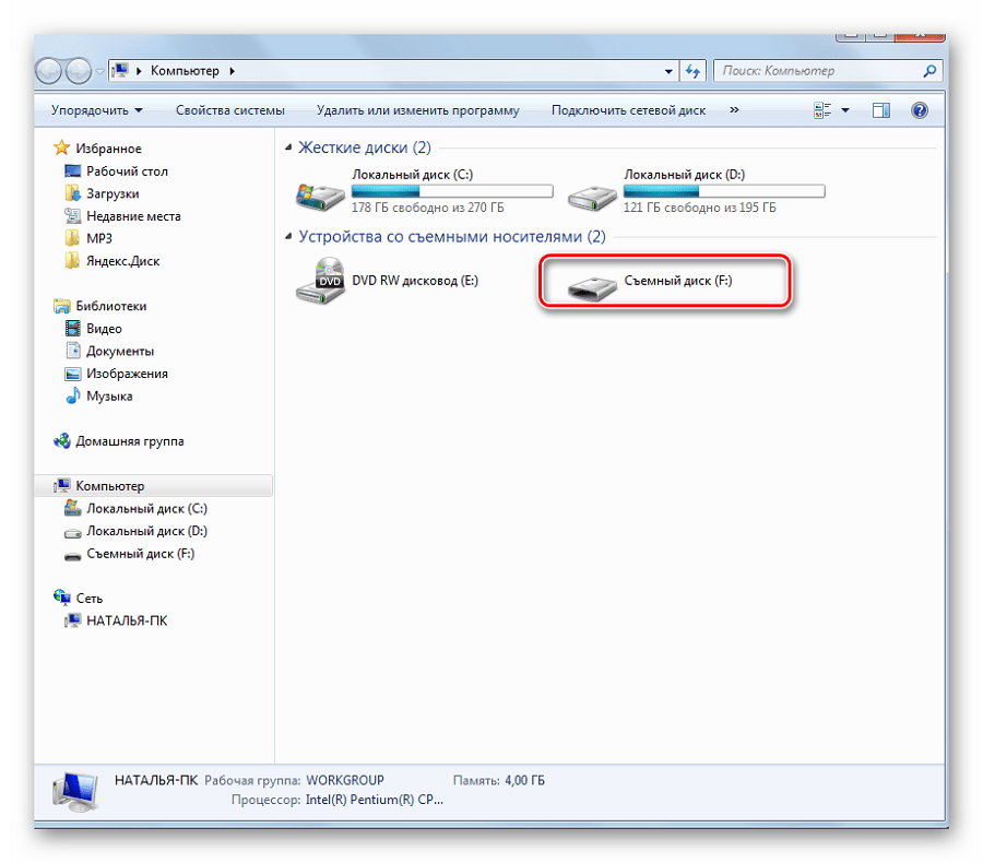 Виртуальная флешка создана. Если войти через папку «Компьютер», то она определится системой как съемный диск.