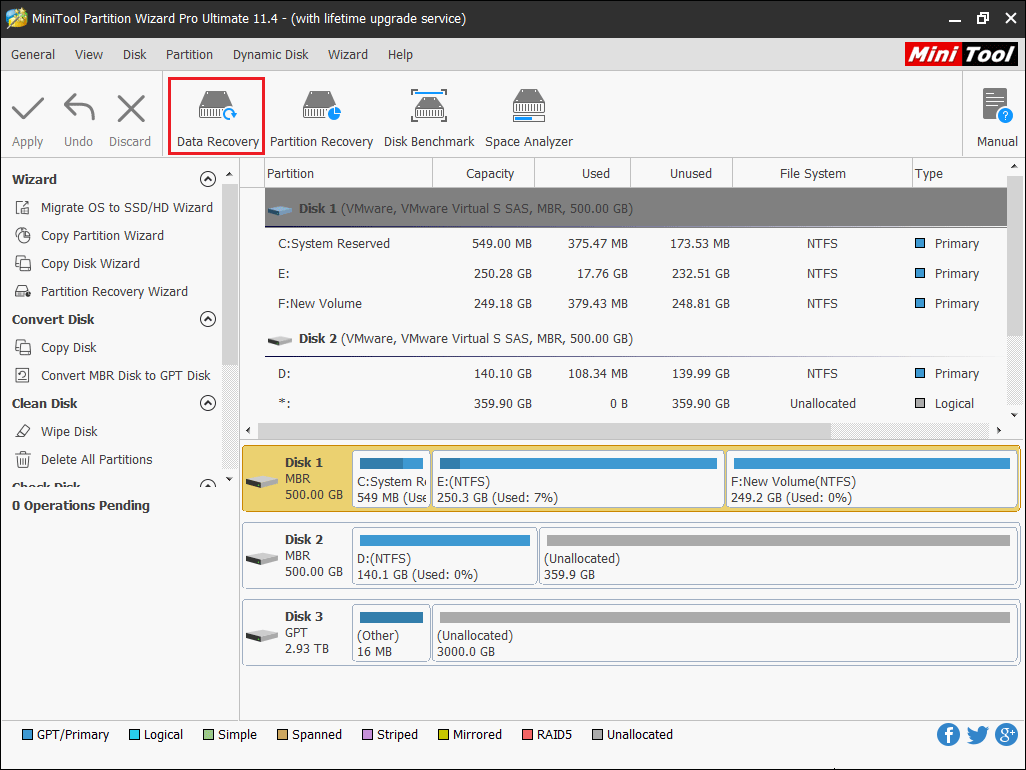 For how to recover data from driver power state failure BSOD with MiniTool Partition Wizard, you can refer to the following steps.
