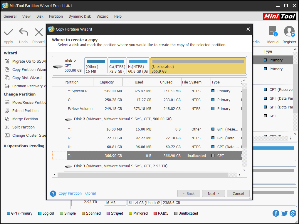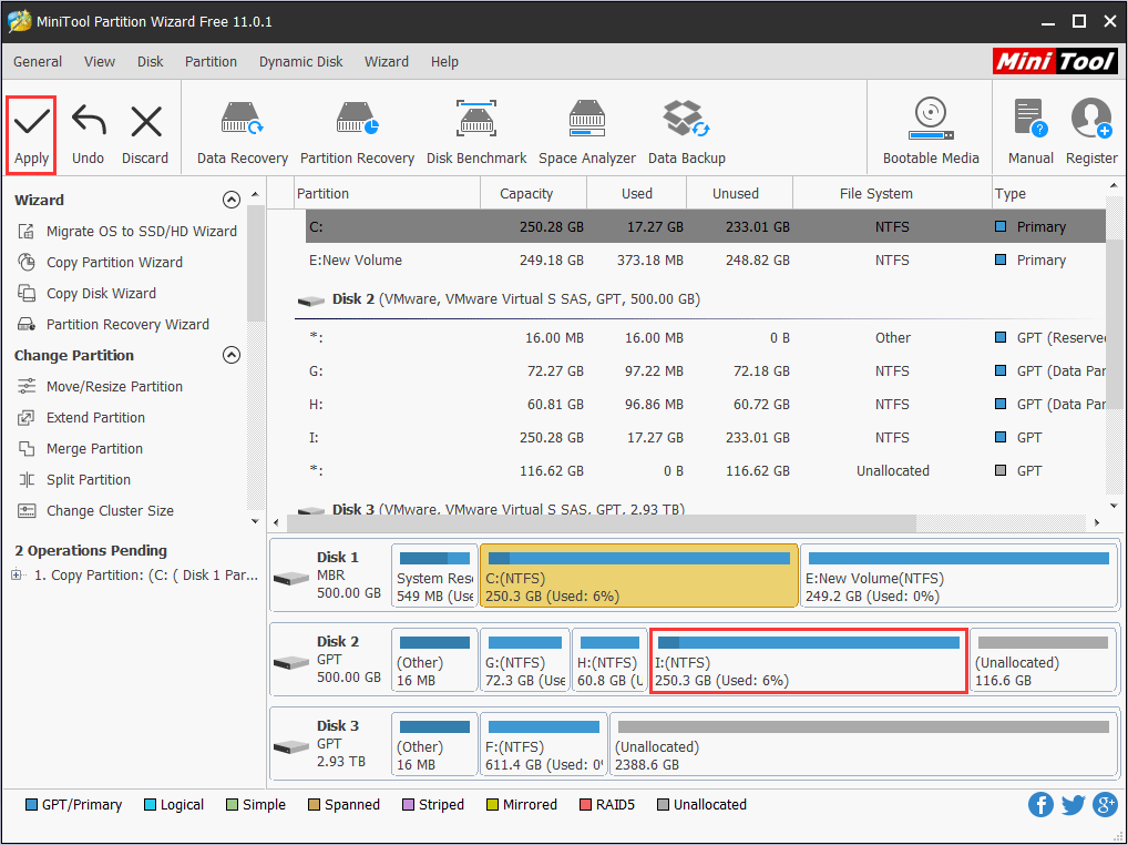 Note: The drive letters has been changed in MiniTool Partition Wizard.
