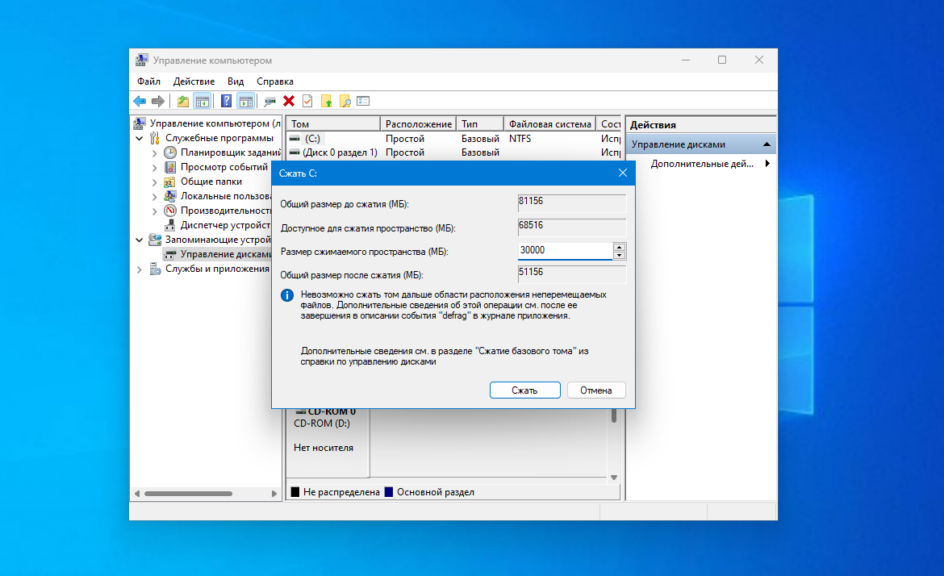Чтобы установить Linux рядом с уже использующейся Windows 10 или 11, нужно будет «отрезать» пространство от системного диска