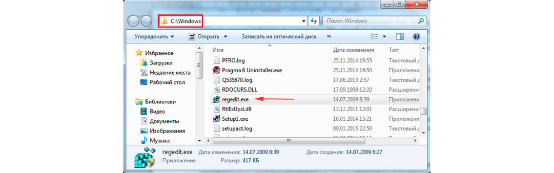 Через реестр
