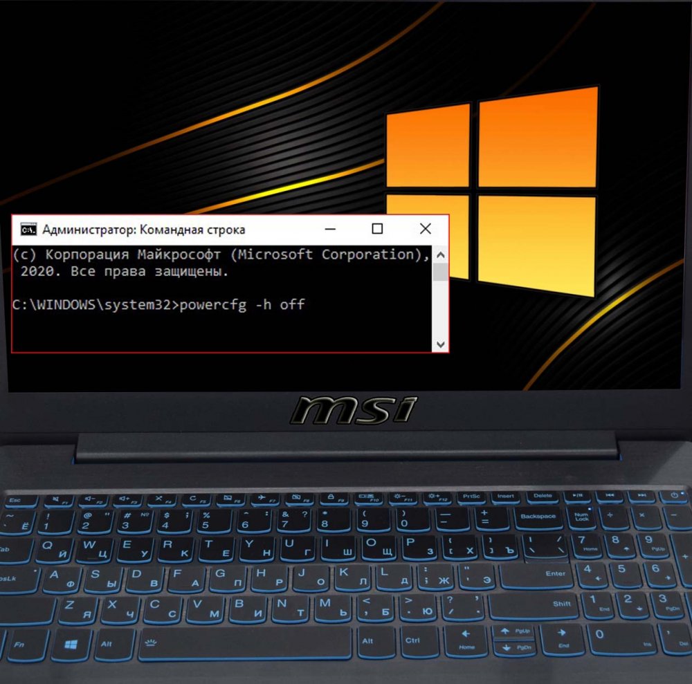 Чтобы отключить гибернацию, запускаем от имени администратора командную строку и вводим: