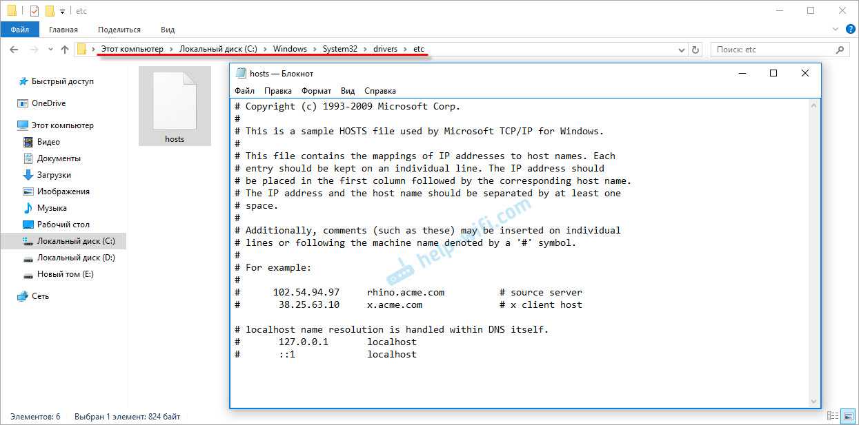 В проводнике перейдите по адресу C:WindowsSystem32driversetc. Можно просто скопировать этот путь и вставить в проводник. Дальше откройте файл hosts через блокнот.