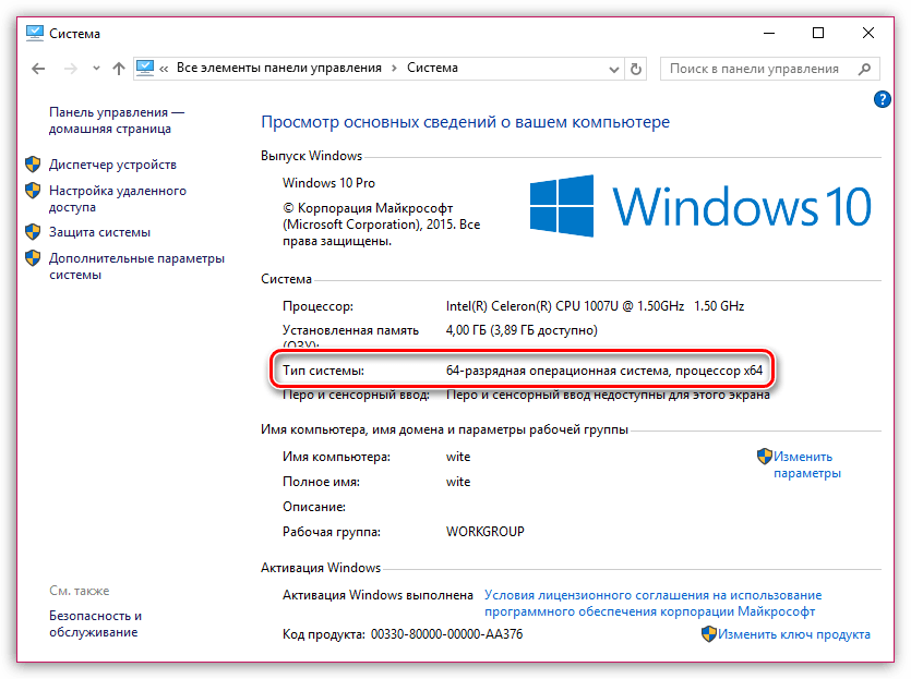 В открывшемся окне около пункта «Тип системы» вы сможете увидеть разрядность вашего компьютера.