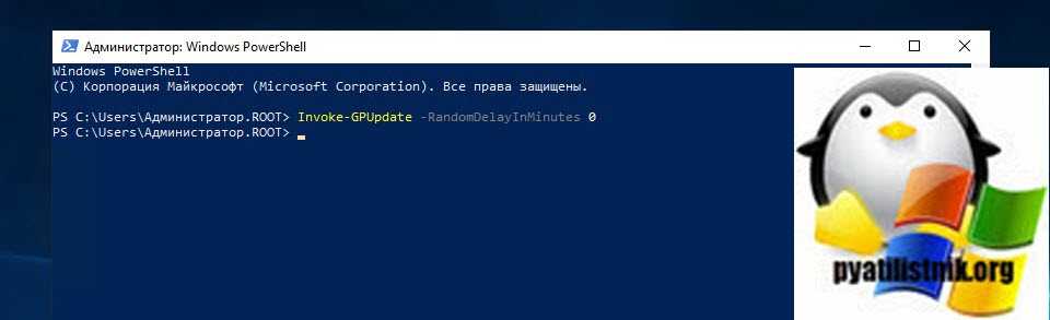 Invoke-GPUpdate -Computer dc01.root.pyatilistnik.org –RandomDelayInMinutes 0