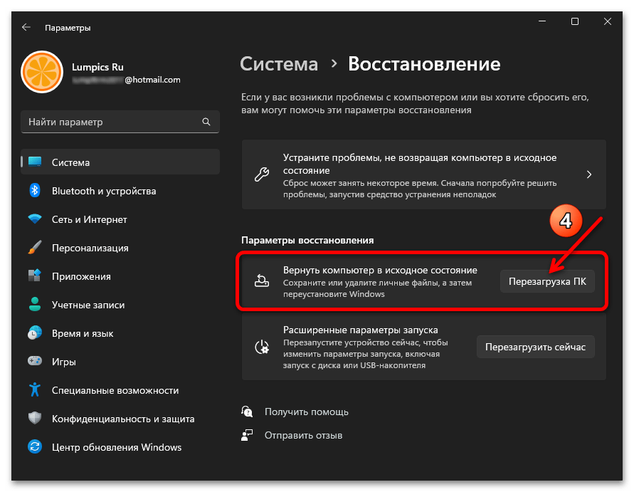 - Перезагрузите систему, чтобы завершить процесс восстановления.