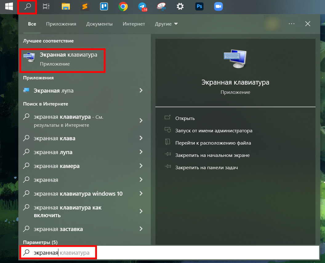 Если напишете в поиске «экранная», Windows автоматически предложит нужную программу