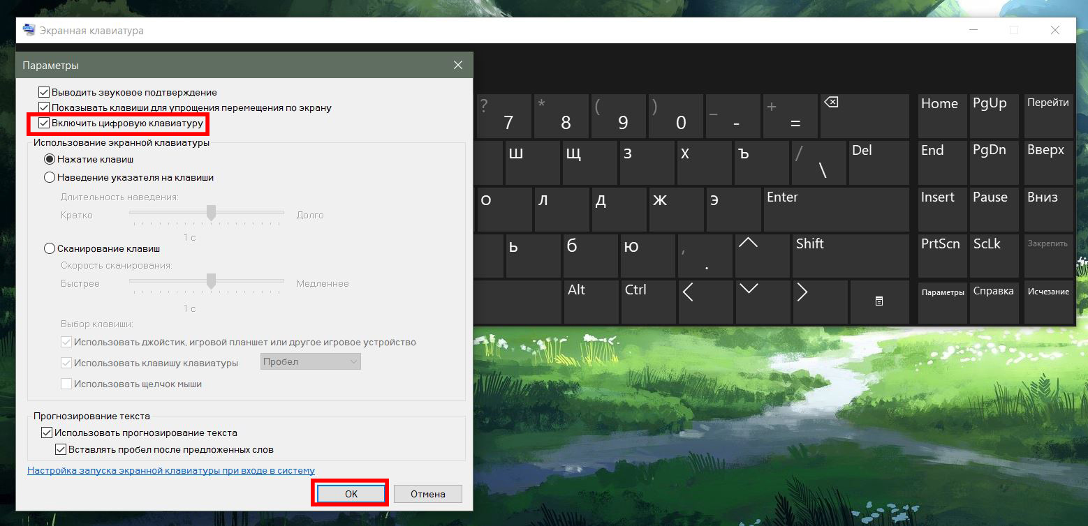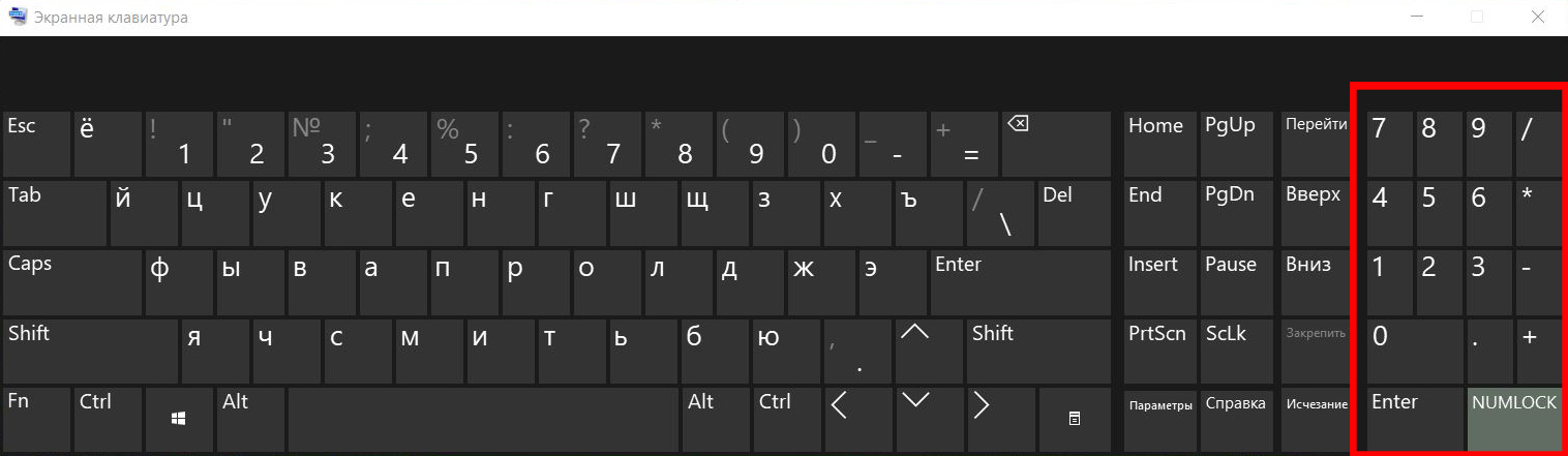 Включите цифровую клавиатуру. Для этого нажмите «Параметры» → «Включить цифровую клавиатуру» → «Ок».