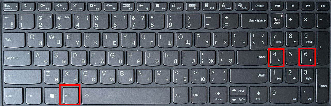 - После появления мигающего курсора зажимаем правую клавишу «Alt» и, не отпуская ее, на цифровой клавиатуре последовательно набираем комбинацию «064».