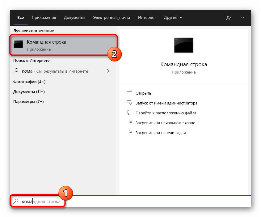 - Откройте приложение «Командная строка» любым удобным методом, например, отыскав ее через «Пуск».