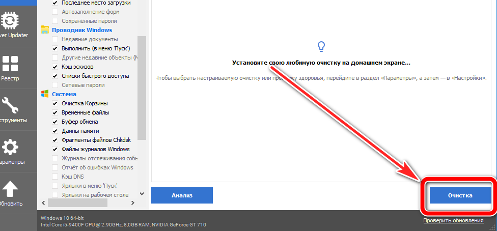 - После этого нажмите кнопку «Анализ». Программа сама определит, сколько места освободится при удалении отмеченных элементов.