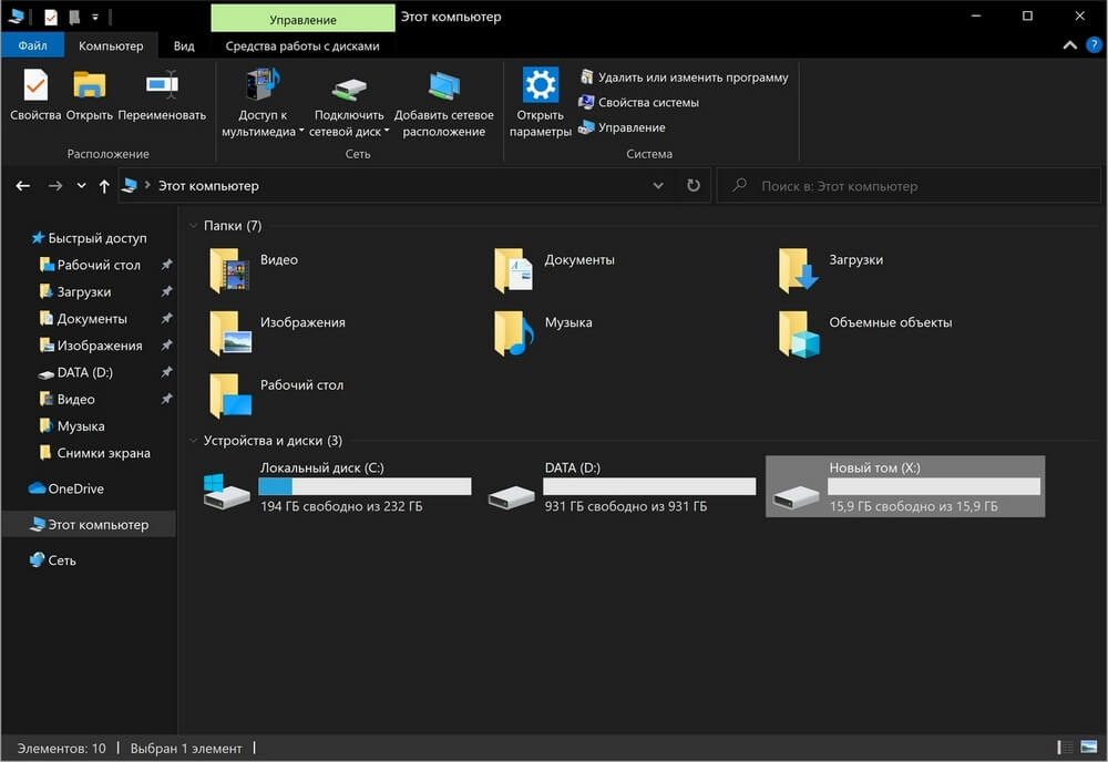 - Убедиться, что съемный носитель отображается в «Мой компьютер»;