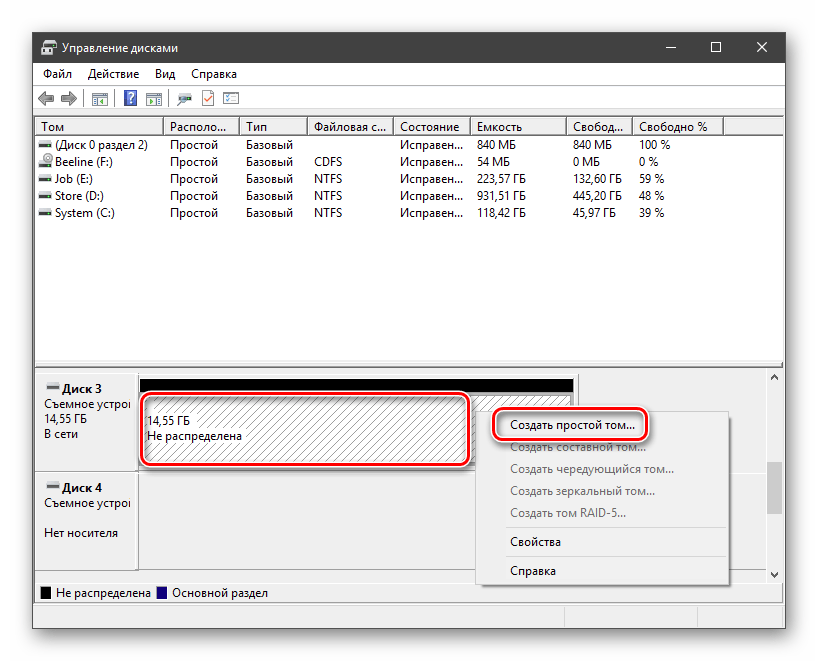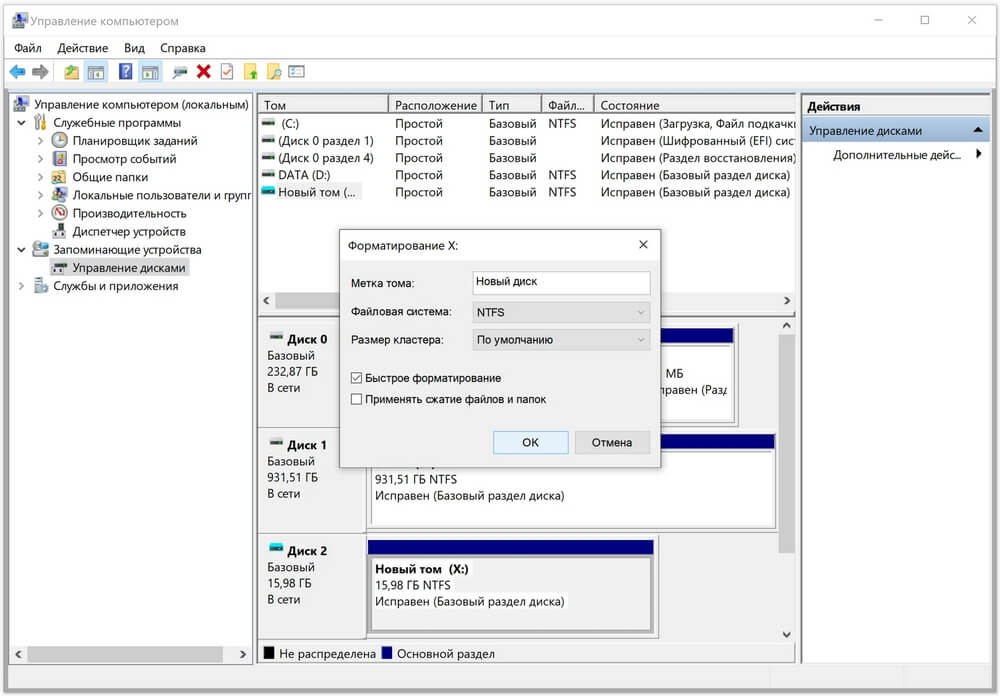Рис. 4 Форматирование с безопасного режима через «Управление дисками».