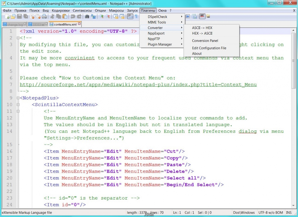 Notepad++ поставляется с основанным на libXML2 плагином XML Tools для поддержки набора полезных инструментов и редактирования XML-документов.