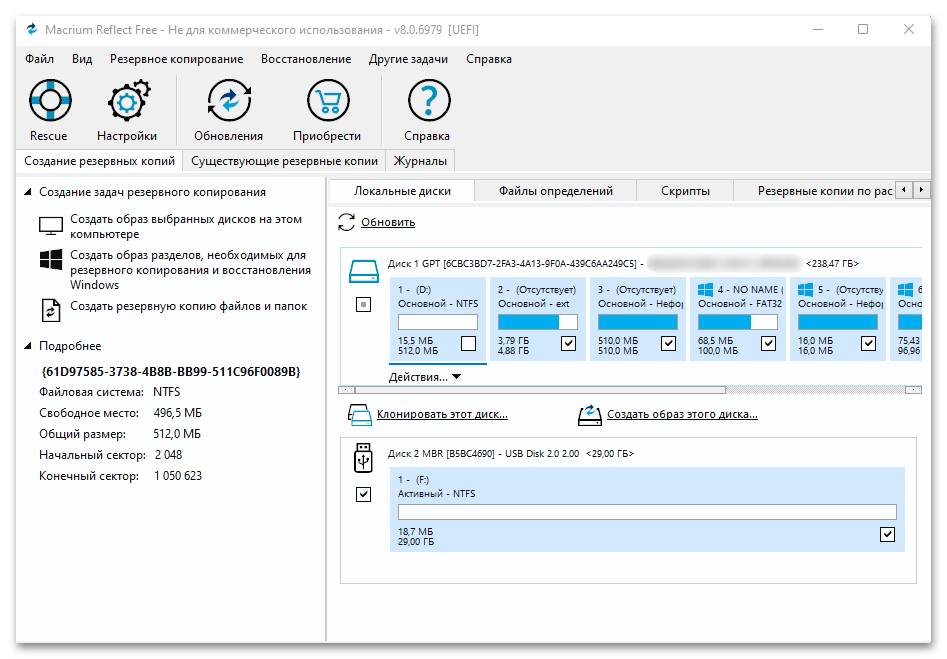 Переходим к процессу клонирования Виндовс с HDD на SSD. После запуска программы Macrium Reflect во вкладке «Create a backup» отобразятся все диски данного компьютера.