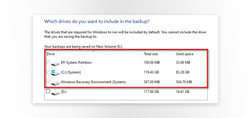 Выберите диски, резервную копию которых Вы хотите сделать.