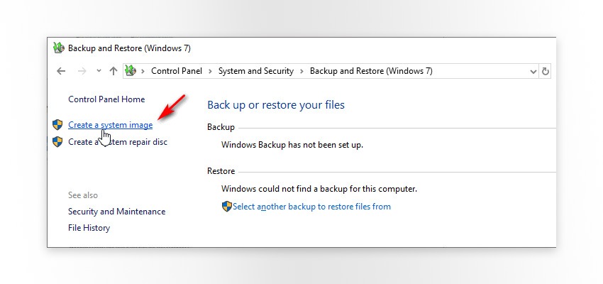 - На левой панели щелкните Создать образ системы.