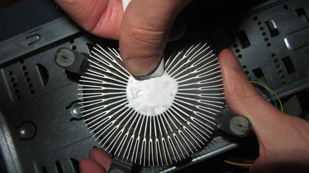 Для устранения термопасты воспользуйтесь специальной салфеткой, заранее смоченной в спирте. Такие же действия нужно проделать с охладительной системой. По окончании очистки нужно нанести новый слой термопасты.