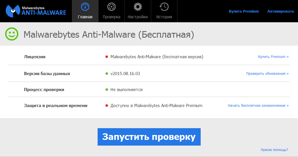 Предельно простой и понятный интерфейс Malwarebytes’ Anti-Malware