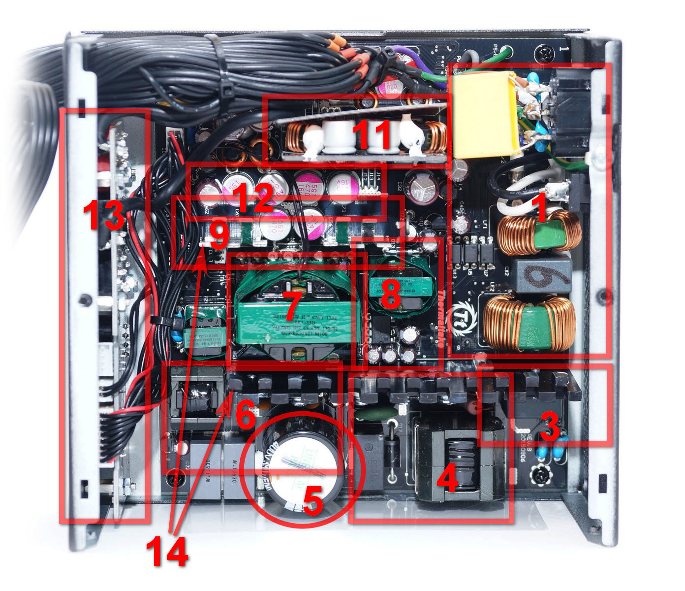 Фото вскрытого блока питания только в редких случаях можно увидеть на упаковке или на сайте производителя. В основном это фрагменты в виде упомянутой выше платы DC-DC преобразователя или японского конденсатора, который может быть единственным во всей схемотехнике.