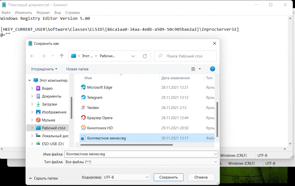 Добавьте созданный файл с расширением .reg в реестр. Перезагрузите компьютер. Новое контекстное меню изменится на привычное классическое.