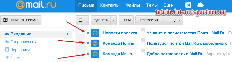Сейчас мы с вами перейдем тоже к довольно «вкусной» функции почты mail.ru, а именно архив. Часто (да почти всегда) бывает такое, что вам приходят письма, которые вам нужны, но удалять не хочется. А также не хочется, чтобы она затерялась где-то в глубине вашей почты или просто неактуальна на данный момент. В общем такие письма можно поместить в «Архив». Для этого поставьте галочку на том письмице, которое вы хотите убрать, после чего нажмите на кнопку «В архив». Файл перенесется и уже не будет во «Входящих».