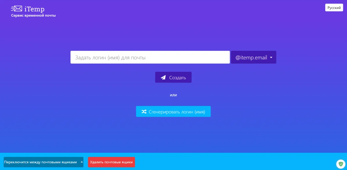 iTemp предлагает пользователям самостоятельно выбирать логин или же сгенерировать автоматически. Кроме этого, можно создать несколько временных почт. Обновление происходит каждые 3 секунды, что очень удобно. Также разработчики предлагают встроенный поиск по письмам и даже позволяют их сохранять. Сайт русифицирован. Хранятся сообщения здесь несколько дней.