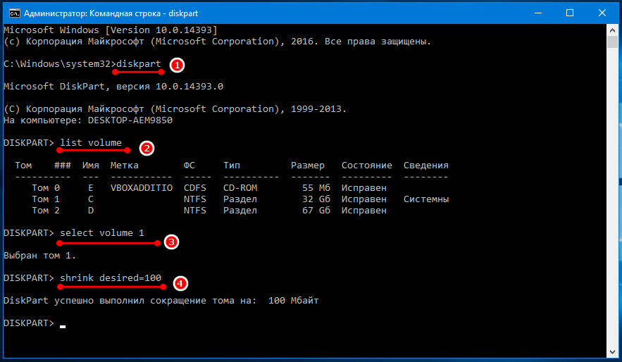 C:Windowssystem32>diskpartMicrosoft DiskPart версии 6.1.7601(С) Корпорация Майкрософт, 1999-2008.На компьютере: VLADIMIR-ПКDISKPART> lis vol(выводим в список все разделы жёсткого диска) Том ### Имя Метка ФС Тип Размер Состояние Сведения ———- — ———— —— ———- ——- ——— ——— Том 0 E CD-ROM 0 б Нет носит Том 1 D Windows 10 NTFS Раздел 64 Gб Исправен Том 2 C Windows 7 NTFS Раздел 55 Gб Исправен СистемныйDISKPART> sel vol 2(выбираем Том 2 — диск (C:) с установленной Windows 7)Выбран том 2.DISKPART> shrink desired=100(сжимаем Том 2 — диск (C:) на 100 МБDiskPart успешно выполнил сокращение тома на: 100 MбайтDISKPART> creat par prim(создаём раздел)DiskPart: указанный раздел успешно создан.DISKPART> format fs=ntfs(форматируем созданный раздел в файловую систему NTFS. Можно сказать, что скрытый раздел System Reserved (Зарезервировано системой) создан) Завершено (в процентах): 100Программа DiskPart успешно отформатировала том.DISKPART> activ(делаем его активным)DiskPart: раздел помечен как активный.DISKPART>DISKPART> assign letter M(присваиваем букву диска M)DiskPart: назначение имени диска или точки подключения выполнено успешно.DISKPART> exit(выходим их diskpart)Завершение работы DiskPart… C:Windowssystem32>bcdboot C:Windows (данной командой мы создаём файлы загрузки на скрытом разделе System Reserved (Зарезервировано системой) для Windows 7!)Файлы загрузки успешно созданы. C:Windowssystem32>bcdboot D:Windows (данной командой мы создаём файлы загрузки на скрытом разделе System Reserved (Зарезервировано системой) для Windows 10!)Файлы загрузки успешно созданы. C:Windowssystem32>