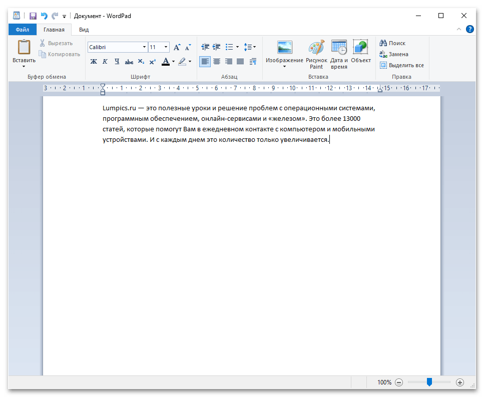 Помимо «Блокнота» в ОС Windows, независимо от версии, есть еще один текстовый редактор, значительно более продвинутый функционально, но точно уступающий платному Microsoft Word. Речь идет о программе WordPad, с помощью которой также можно решить задачу из заголовка статьи.