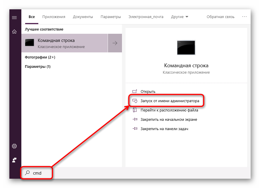 - Запустите командную строку от имени администратора и вновь примените в ней команду: