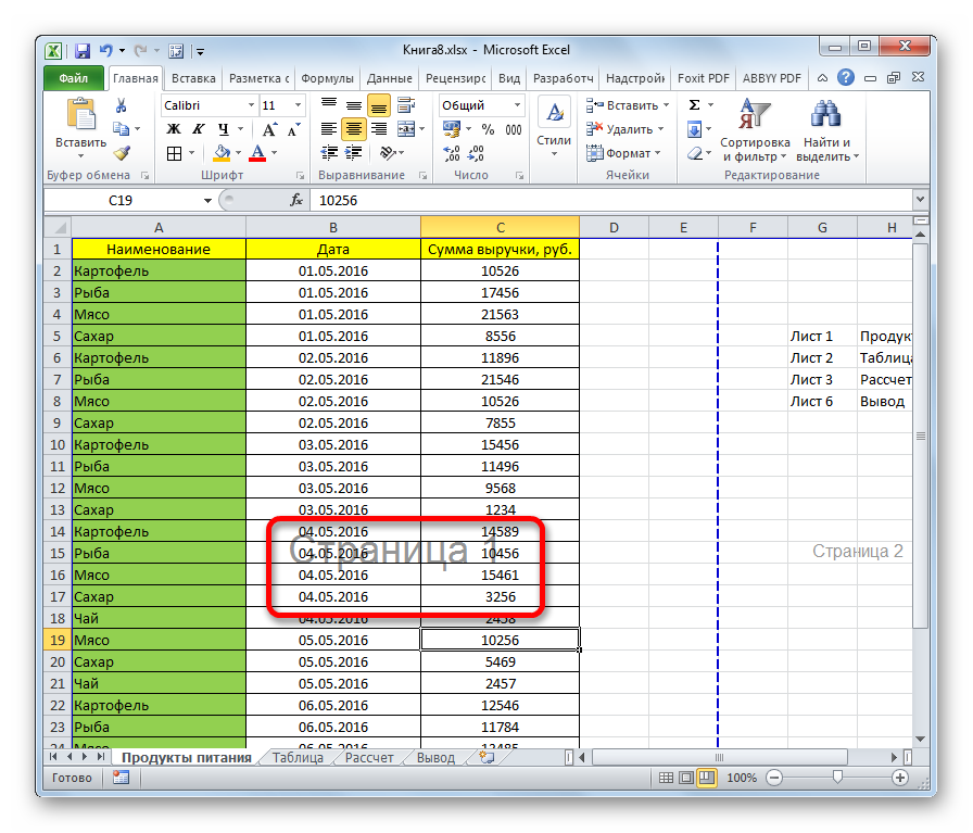 Также есть «Режим страницы», который предназначен исключительно для изучения информации в виде «целевого» контента. То есть в этом режиме в таблице исчезают лишние детали и пустые ячейки, остается только полностью заполненная область.