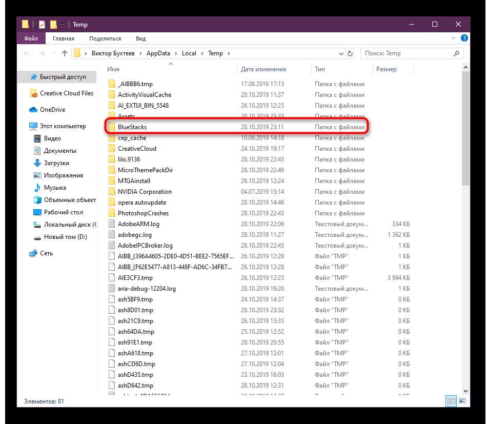 - Удалите встроенной функцией ОС найденные папки и файлы Блюстакс.