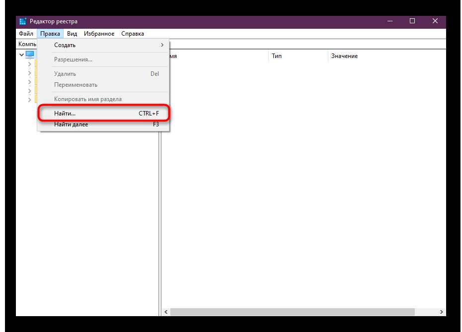 - Запускаем реестр нажмимаем сочетание клавиш — «Win+R», и пишем в строке regedit жмем ОК: Вызываем меню поиска — «Правка — Найти»: