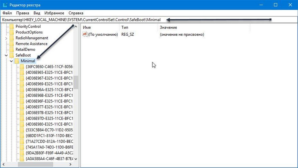 HKEY_LOCAL_MACHINESYSTEMCurrentControlSetControlSafeBootMinimal