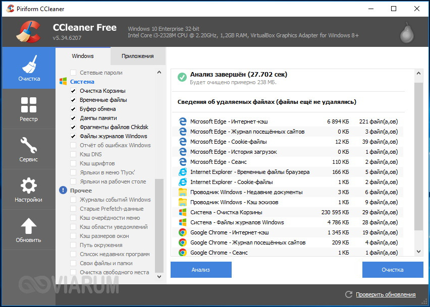 – простой, быстрый, удобный, а самое главное безопасный чистильщик диска и реестра Windows. Эта программа позволяет удалять временные данные интернета и самой Windows, содержимое кэша эскизов и DNS, файлы Index.dat, дампы памяти, фрагменты файлов chkdsk, разные системные журналы, устаревшие файлы prefetch и ещё множество второстепенных данных.