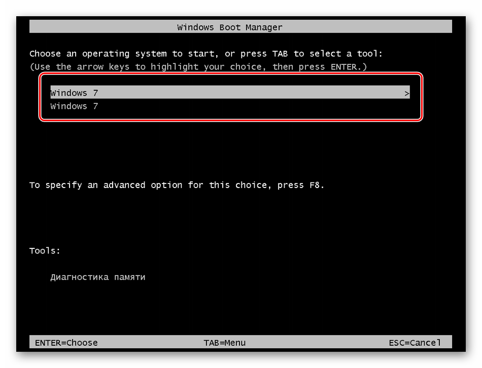 Менеджер загрузки говорит нам, что возможно выбрать одну из установленных систем. Это вызывает путаницу, так как названия одинаковые, тем более что вторая копия нам совсем не нужна. Такое происходит в двух случаях: