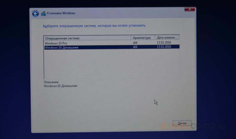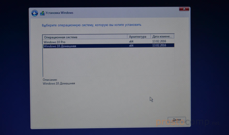 Если вы записали несколько версий Windows 10, то понадобится выбрать необходимую для установки. Я устанавливал «Домашнюю».