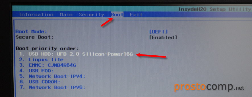 - Выставив загрузку в настройках BIOS.