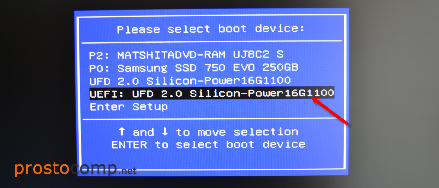 На ноутбуках ASUS загрузка с флешки через Boot Menu выглядит вот так: