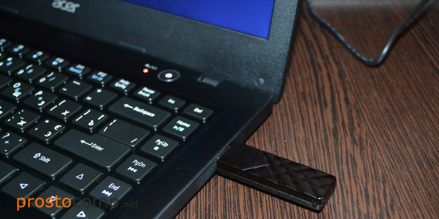 Если вы будете выполнять установку с диска, то вставьте его в привод. Если с флешки, то подключите ее в USB-порт ноутбука. Только подключайте в USB 2.0 (этот порт НЕ синий внутри). Если подключить к USB 3.0, то могут возникнуть некоторые проблемы.