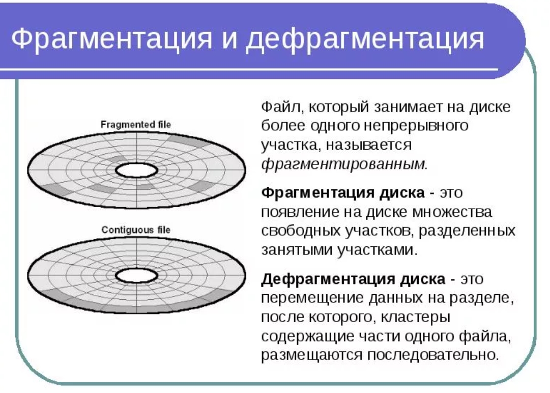 Фрагментация – это распределение данных по разным уголкам диска. Если фрагменты этих данных подверглись сильной дефграгментации, то это может стать основной причиной, когда компьютер медленно работает.