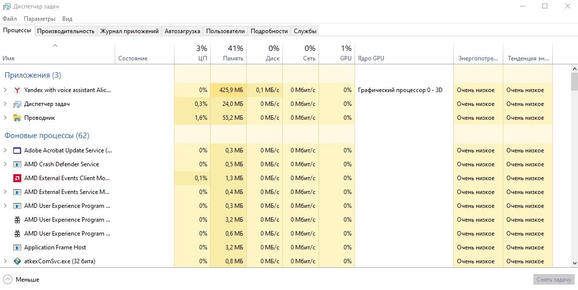 Различные программы используют ресурсы компьютера по-разному. Поэтому стоит узнать, какое приложение загружает компьютер, то есть войти в Диспетчер задач и посмотреть список запущенных приложений. В таблице вы увидите, насколько сильно активные программы загружают процессор, память, видеокарту и жесткий диск.