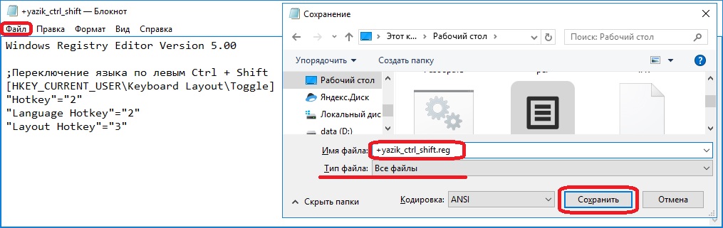 Windows Registry Editor Version 5.00 — это строка приветствия системы, позволяющая Windows определить, какого типа файл был запущен. Обязательна в начале всех reg-файлов, прописывается один раз.;Переключение языка по левым Ctrl + Shift — строка комментария. Любая строка файла изменения реестра, начинающаяся точкой с запятой, не будет исполняться системой, служит для пояснительных записей. Комментарии прописываются сколько угодно раз. — куст реестра, в котором будут производиться изменения. О множественных записях подробно отметим чуть ниже.»Hotkey»=»2″, «Language Hotkey»=»2», «Layout Hotkey»=»3» — ключи реестра, расположенные в обрабатываемой ветке, и задаваемые им параметры. Каждый ключ с новой строки.
