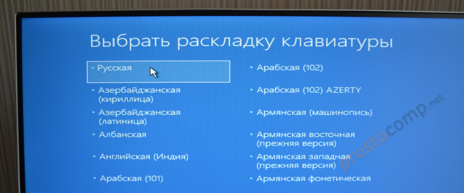 Далее необходимо загрузиться с флешки или с диска с дистрибутивом ОС. Процедура абсолютно такая же, как и во время установки Windows. Выбираем язык установки: