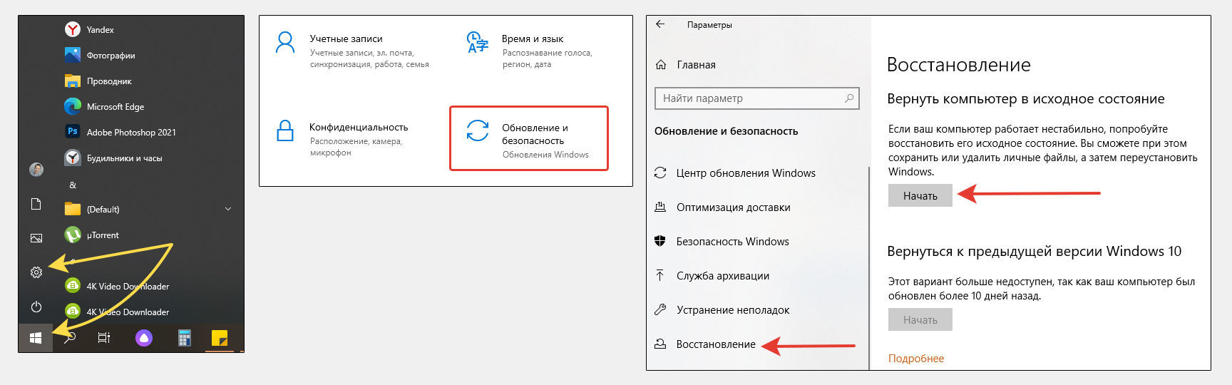 Варианты откатить Windows 10 назад к исходному состоянию