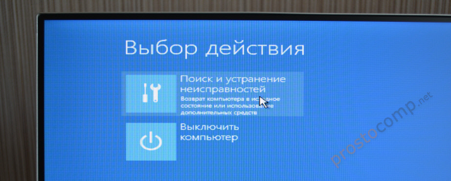 Выберем первое->Устранение неполадок компьютера,