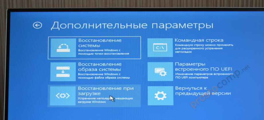 Запуск восстановления Windows 10