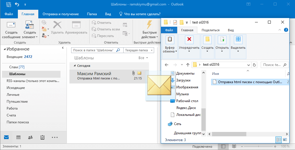 Помимо непосредственно отправки html-писем, мы хотим поделиться с вами еще одним небольшим «лайфхаком» для Outlook 2016 — сохранение писем как шаблонов.