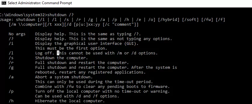 As you can see, the command has quite a lot of options and can be used to shutdown/restart a local or remote computer.