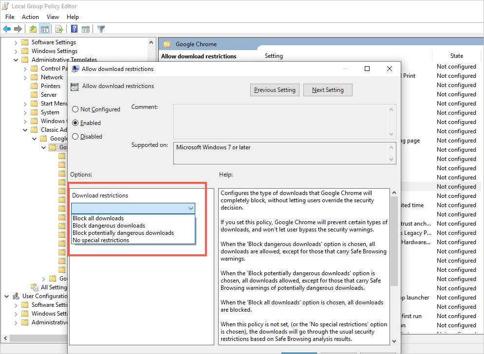 2. Blocking Chrome All Downloads from Group Policy Editor